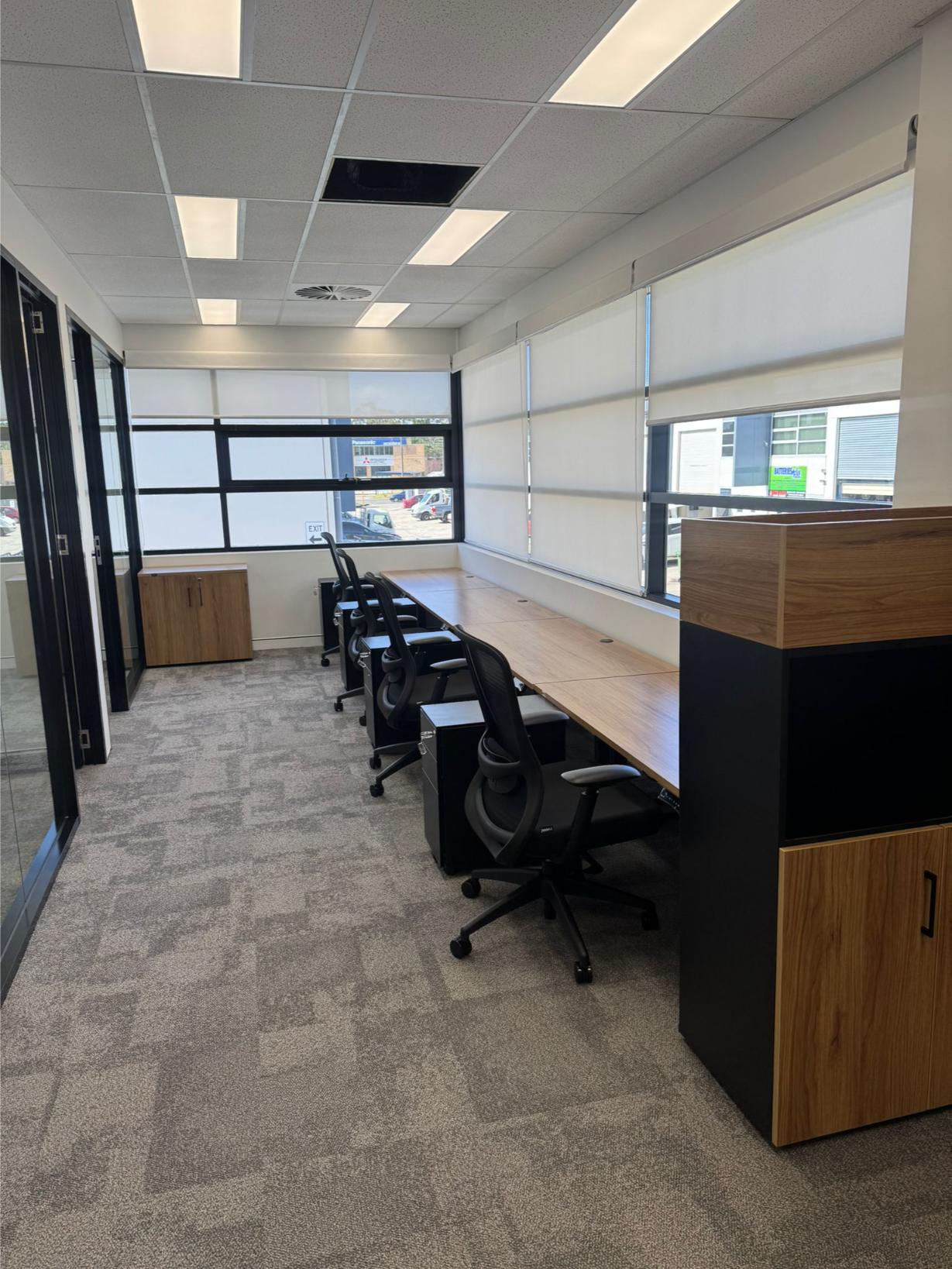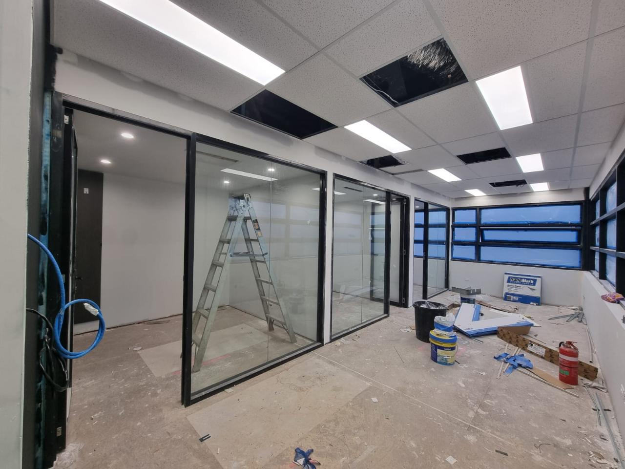 Electrical services were upgraded and extended to support the new mezzanine and revised floor layout. Internal modifications included new partitioning, ceilings and glazing to create defined work areas, along with construction of new amenities including bathrooms and a kitchenette.
