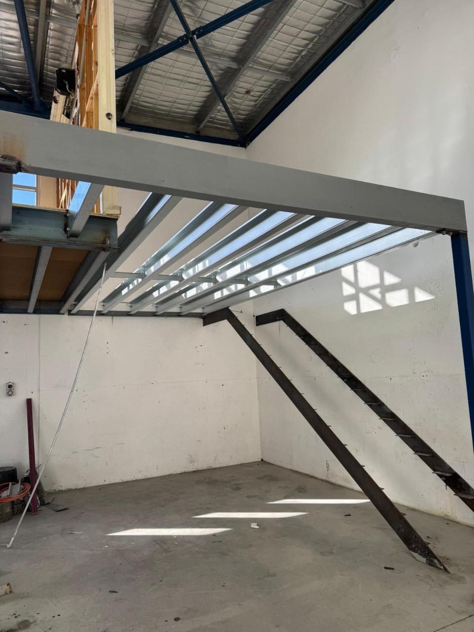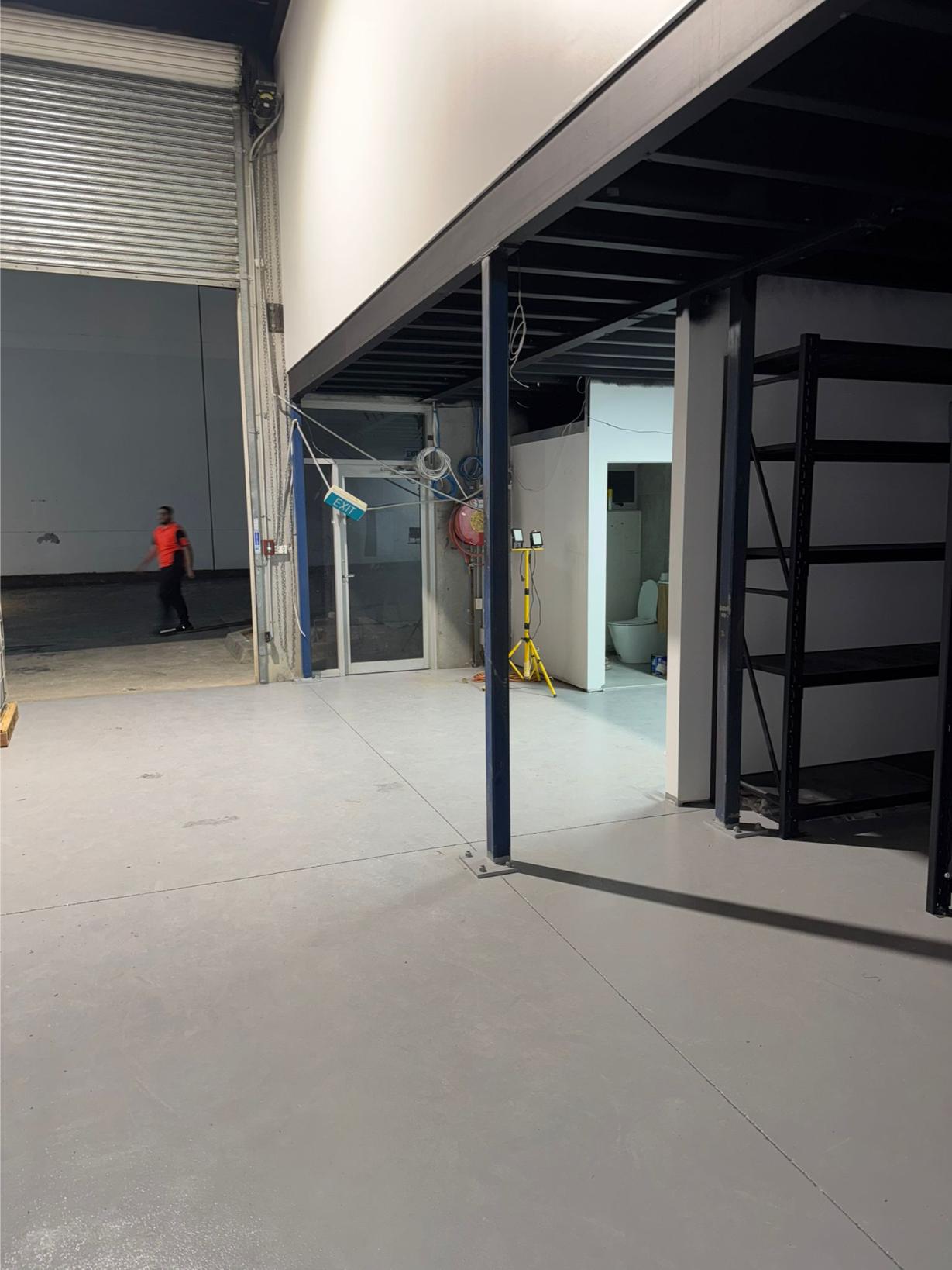 Works included preparation and installation of a seamless epoxy flooring system across the slab, providing a hard-wearing finish suited to high-traffic use. A new mezzanine level was constructed to introduce additional storage and workspace, designed to integrate with the existing structure.