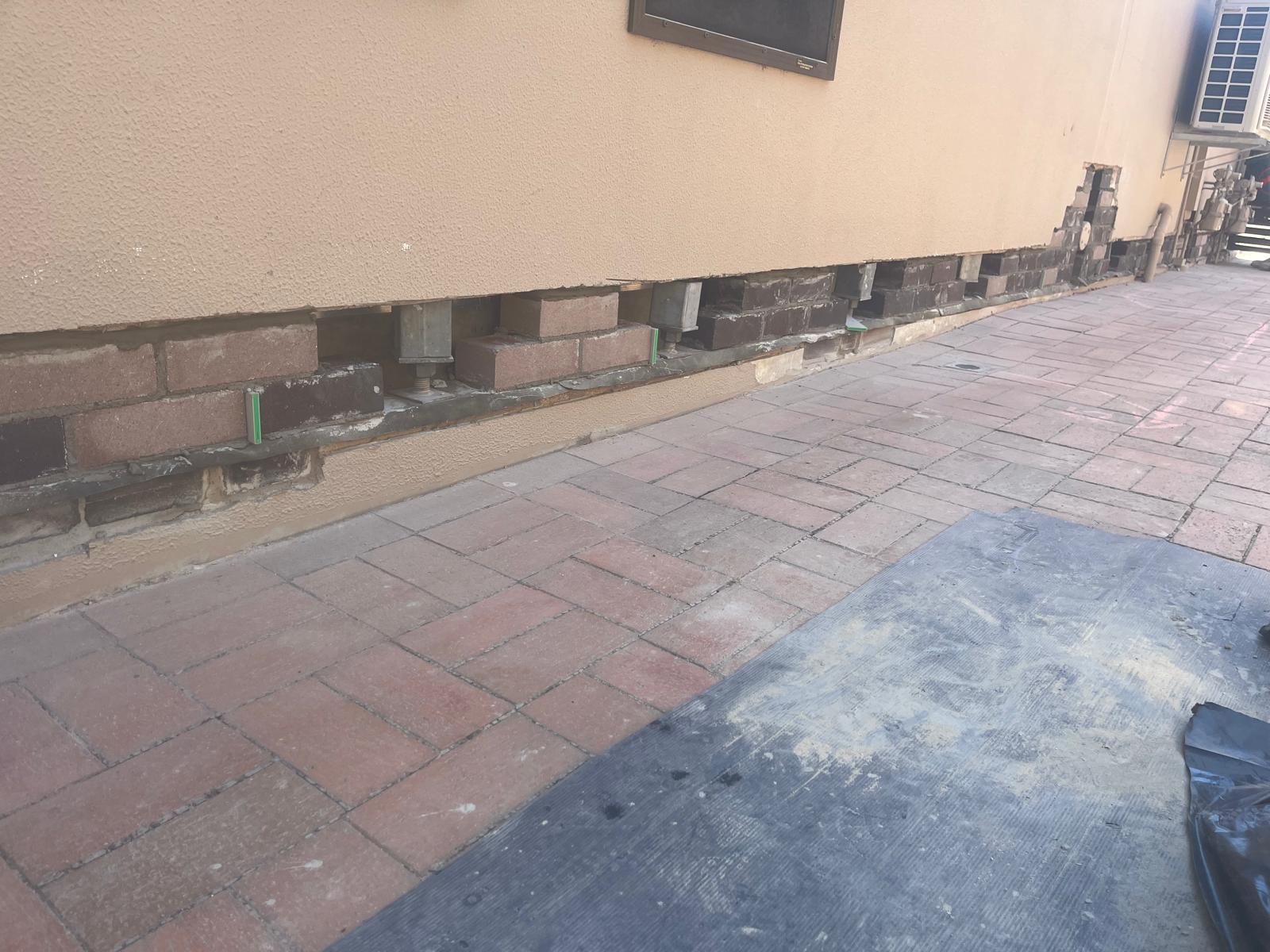 The works addressed significant slab settlement (up to 60mm) and ongoing moisture ingress affecting the living and kitchen areas.